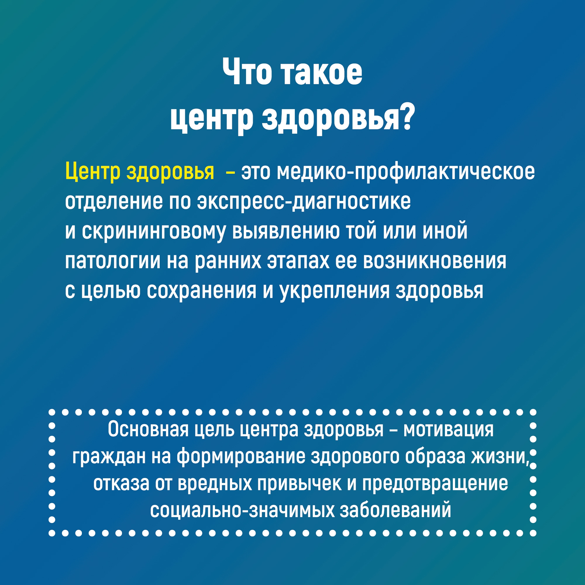 Забота о здоровье начинается с доверия — к врачам, медицинским организациям и тем, кто помогает нам оставаться в хорошей форме. Центры здоровья созданы именно для этого: чтобы каждый мог получить грамотные советы, пройти обследование и узнать, как сохранить активность и силы надолго.