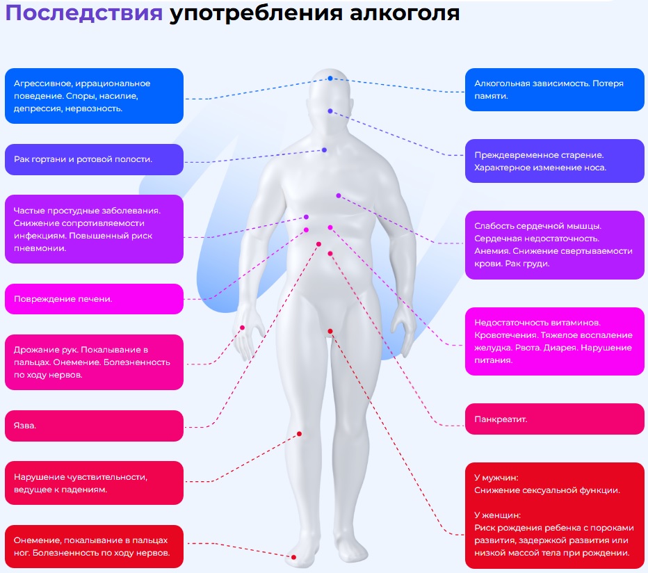😟Употребление алкоголя является причиной более чем 200 заболеваний, травм, а также других нарушений здоровья. Алкоголь увеличивает риск развития сердечно-сосудистых заболеваний, злокачественных новообразований, заболеваний пищеварительной системы, вызывает психические и поведенческие нарушения.